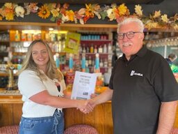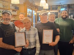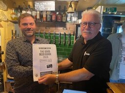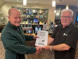 (right)Laurence (White Rock Hotel) receiving the guide from Robert.