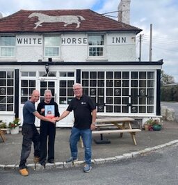 (left) Russell & Liz (White Horse)receiving the guide from Robert.