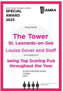 Congratulations to Louisa and her staff who at The Tower have achieved the highest average score for two years in a row, the accompanying pictures show Branch Vice Chair Roger presenting the 2025 award to Louisa.